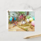 Acorn elves creating Easter stick - funny Easter postcard with decorated eggs