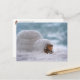 Acorn elves playing with the snow, building iglu winter postcard - funny postcrossing postcard