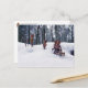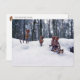 Acorn elves ride sledge - funny winter postcrossing postcard