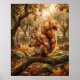 A playful acorn squirrel perches in a cosy orchard grove where woodland charm meets harvest beauty. Realistic squirrel anatomy blends with acorns, oak leaves, bark textures, and rich autumn fur details across its lively tail and nimble form. Apple trees, fallen leaves, mossy stones, baskets, golden sunlight, and layered countryside depth create a cheerful seasonal scene. This heartwarming fantasy animal design adds warmth to kitchens, nurseries, entryways, or gift collections. Perfect for squirrel lovers, fall decor fans, and rustic cottage interiors.