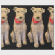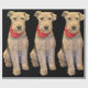 Black background, obstinate airedale foreground. Holiday gift-wrapping frenzy, here we come!