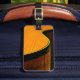 On the front, an abstract photograph of the colours and curves of a classical guitar, and on the reverse, a section of guitar neck into which you simply type your information to make it yours. Just type into the boxes under "personalise it". Great for your guitar case or any travelling musician or music lover.