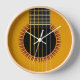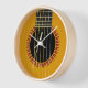 This clock simulates a close-up view of a portion of an acoustic guitar.