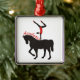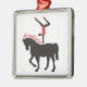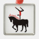 Acrobatics on horseback custom ornament featuring a woman in red doing acrobatics on a black horse silhouette.