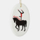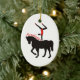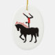 Acrobatics on horseback custom ornament featuring a woman in red doing acrobatics on a black horse silhouette.