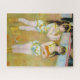 The two little circus girls in this painting are Francisca and Angelina Wartenberg, who performed as acrobats in the famed Cirque Fernando in Paris. Although they were depicted in the centre of a circus ring, the sisters actually posed in costume in Pierre-Auguste Renoir’s studio, enabling him to paint them in daylight. Here he portrayed them just as they have finished their act and are taking their bows. One sister turns to the crowd, acknowledging its approval, while the other faces the viewer with an armful of oranges, a rare treat that the audience has tossed in tribute.