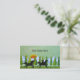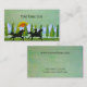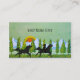 Customise this business card! Two silhouettes of horses and a rider, galloping across a grass meadow. Texturised background in refreshing greens. Pine trees, snow capped mountains and a sunset in the background. From an original mixed media painting by Minerva Bloom for Angela Piraino.