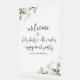The "Greenery Wedding Engagement Party Welcome Sign" is a stunning and elegant decoration designed by CaMiDesigns. This welcome sign showcases delicate watercolor greenery and eucalyptus branches, creating a natural and sophisticated look that is ideal for an engagement party. The sign can be personalised with your names and event details, making it a unique and practical keepsake for your guests. For orders, shipping, product information, and further assistance, please contact Zazzle Customer Care directly.
