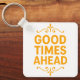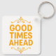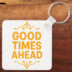 "Good Times Ahead" acrylic keychain. A positive, motivational accessory perfect for keys, bags, or gifts. Features a stylish, uplifting quote in vibrant orange on a square, double-sided design. Customize with your own text!