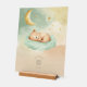 Add modern charm to your nursery with this acrylic sign featuring a sleeping baby bear resting on a mint-green cloud beneath a crescent moon. The soft watercolor tones of sage, cream, and blush peach glow beautifully against the smooth acrylic surface.