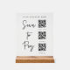 Our clear acrylic sign is perfect to allow guests or customers to pay directly from their mobile device by scanning the QR code.