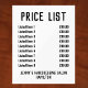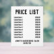 Acrylic price-list for any business such as a nail bar, beauty salon, hairdresser or barber shop. Alter prices as you wish. Displays up to 9 items and prices. Black and white.