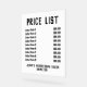 Acrylic Price List Sign