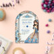 ACRYLIC Quinceañera Blue Silver Peach Dress Floral Invitations