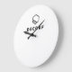 Purchased this online and it got delivered quickly. It was a present for my Dads 70th birthday. He loves clocks so decided to get him one with something written on it. Battery went in and it started working straight away. Dads had no issues with it. Printing was just how it came up online.