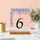 Bring a touch of soft elegance to your event with these minimalist table signs, styled with a clean, modern font and delicate purple floral accents. Set on a classic wooden base, each sign blends natural charm with refined beauty—perfect for weddings, bridal showers, or any sophisticated celebration.