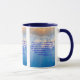 This two-tone mug has a hatton black print font with blue letters featuring the "Acts 10:7 KJV" bible scripture verse over a background picture showcasing a cloudy blue sky with the sun shining through the clouds creating a dual coloured look and sunrays. This verse is referencing the Book Of Acts 10th chapter showing the 7th verse in this bible scripture quote theme from the King James bible. The rim & handle are glazed in matching colours available in 11-ounce or 15-ounce sizes microwave and dishwasher safe ceramic construction.
