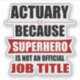 Actuary because superhero is not a job title novelty in sans-serif uppercase block lettering in black and red.