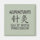 "Acupuncturists Do It With Precision" is the perfect funny design for the acupuncture expert! With the Chinese symbol for acupuncture. Add your own text, choose your background colours. Have employees wear it around the office, put it on rack cards, business cards, or on postcards for your mailers! Don't forget to customise the colour combinations and fonts.