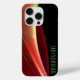 Personalise this phone case adorned with this dreamy sweep that runs along the edge. The design is a flowing red and green fractal over a black background. Fill in the template field with your information, remove unwanted text or edit using the design tool to change the font style, size, and colour.