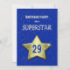 Add a name to customise this unique party invitation. A fun 29th birthday party invitation for a Superstar. Add your party details to personalise a very special birthday party invite.