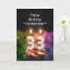 Burning 33rd birthday cake candles in the shape of numbers on top of a chocolate cupcake. Customise with the name of the birthday person. Suitable for a man or a woman. See the whole range of cards for ages and relationships in my store. All artwork copyright Norma Cornes