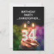 Add a name to customise this unique party invitation.A fun 34th birthday party invitation with happy candle numbers burning on a chocolate cupcake. See the whole range of invitations and cards in my store.