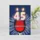 Add a name to customise this unique party invitation. A fun 45th birthday party invitation with happy candle numbers burning on a glass of red wine. See the whole range of invitations and cards in my store.