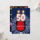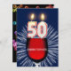 Add a name to customise this unique party invitation. A fun 50th birthday party invitation with happy candle numbers burning on a glass of red wine. See the whole range of invitations and cards in my store.