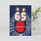Add a name to customise this unique party invitation. A fun 65th birthday party invitation with happy candle numbers burning on a glass of red wine. See the whole range of invitations and cards in my store.