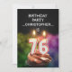 Add a name to customise this unique party invitation.A fun 76th birthday party invitation with happy candle numbers burning on a chocolate cupcake. See the whole range of invitations and cards in my store.