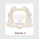 This pickleball themed sticker has a watercolor image of a crest surrounded by branches with green and lavender gingham pickleball paddles in the centre. Colours used include moss green, lavender and and tan. You can add a name.