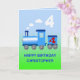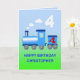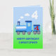 A blue train puffing out clouds of white steam. Add a name to this fourth birthday card.