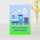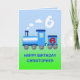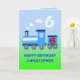 A blue train puffing out clouds of white steam. Add a name to this sixth birthday card.