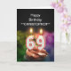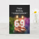 Burning 69th birthday cake candles in the shape of numbers on top of a chocolate cupcake. Customise with the name of the birthday person. Suitable for a man or a woman. See the whole range of cards for ages and relationships in my store. All artwork copyright Norma Cornes