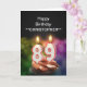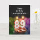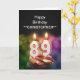 Burning 89th birthday cake candles in the shape of numbers on top of a chocolate cupcake. Customize with the name of the birthday person. Suitable for a man or a woman. See the whole range of cards for ages and relationships in my store. All artwork copyright Norma Cornes