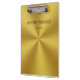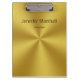 This metallic look clipboard has a gold radial pattern. You can add custom text to include your employee's name and title. Perhaps you'd like to add the name of your company instead. It's all up to you. You can edit or delete the black text as desired. The gold look is an artistic rendering. It's not real foil or metal.