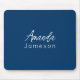 Add Full Name Simple Minimal Monogram Dark Blue Mo Mouse Pad