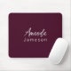Add Full Name Simple Minimal Monogram on Dark Red Mouse Pad