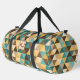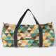 Add Initials, Retro Abstract Triangles Green Brown Duffle Bag