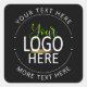A Add Your Own Logo black square sticker with options to add your own text ( name or business name) and short message towards the bottom. Can be used for your small business, events, non profit etc. for promotional marketing, customer thank you gifts, etc. Have fun with it!
