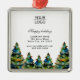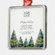 Add Logo Custom Text Christmas Pine Tree Promotion Metal Ornament. Watercolor colourful Christmas pine trees. Insert your logo into the template and customise the text, company name, address and contact information. Business promotion or giveaway for your clients and business partners.