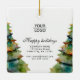 Add your Logo Custom Text Watercolor Christmas Tree Promotion Ceramic Ornament. Watercolor colourful Christmas tree. Insert your logo into the template and customise the text, company name, address and contact information on the front and on the backside. Business promotion or giveaway for your clients and business partners.