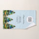Add your Logo Custom Text Christmas Tree Promotion Hand Towel. Watercolor colourful Christmas trees on a bright blue background. Insert your logo into the template and customise the text, company name, address and contact information. Business promotion or giveaway for your clients and business partners.