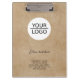 Add your Logo with Custom Text Rustic Company Promotion Clipboard. Beige rustic background. Add your logo and customise the text, company name, address and contact information. Business promotion or giveaway for your clients and business partners.