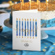 Wish your best clients, employees and business partners a very happy birthday with this elegant modern and simple vertical business corporate happy birthday Card, featuring tall navy blue watercolor candles with faux gold flames and partly hand written text happy birthday on a clean white background. Please note that the gold in this design is a flat color print and is not an actual gold foil. But there are also real gold foil version postcards available, check in the collection or contact the Creator for the direct link. On the front side and inside is custom text and a place for your custom logo. Perfect for all type of businesses. Set as a template for your easy online personalization.