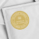Modern return address sticker that you can add your own logo featuring a round double border for your address in between it and your name in the centre all in white against an editable background colour (click customise to change). This sticker is ideal for businesses when they are sending out mail or packages to their customers.