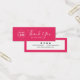 Mini card featuring your logo with the words "Thank You" in calligraphy script against an editable background colour on the front "click customise and change background colour" . You can also add your social media handles and hashtags as well as your web address against a white centre on the back with an editable border (click customise and change background colour to change the border colour from pink to that of your choice). It makes a great a great tag or insert for your products and packaging.