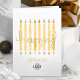 Personalise this stylish corporate card online and wish your clients, employees and business partners a very happy birthday with this elegant modern vertical business happy birthday Card, featuring tall optimistic yellow watercolor candles with faux gold flames and partly hand written text happy birthday on a clean white background. Please note that the gold in this design is a flat colour print and is not an actual gold foil. There are also real gold foil version postcards available, check in the collection or contact the Creator for the direct link. On the front side and inside is custom text and a place for your custom logo. Perfect for all type of businesses. This design is set as a template for your easy online personalisation. It is also available as an instant digital download.