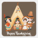 Add message Thanksgiving Pilgrim Indians Square Sticker